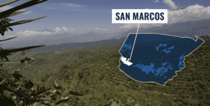 The warmest of all the regions, San Marcos also experiences the highest rainfall levels, reaching up to 5,000 mm annually. The rains tend to come sooner than in other areas, which results in the earliest flowering. Small coffee farms with their own processing plants produce the majority of Volcanic San Marcos.