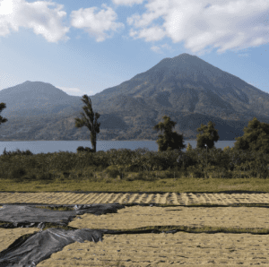 The three volcanoes that overlook Lake Atitlán – Toliman, Atitlan, and San Pedro – play a role in the microclimate, and the daily winds (Xocomil) help to stir the cold waters of the lake. This creates an ideal growing environment for the Atitlan coffee cultivated on the slopes of these volcanoes. The rich soil and ideal climate conditions produce delightfully aromatic beans with a bright citrus acidity and full body.